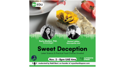 Rejoignez-nous pour une réunion éclairante d’une heure où la science la plus récente est rendue simple et accessible. L'immunologiste Rasha Msallam PhD et la chef naturopathe Asmaa Lahlou s'unissent pour décomposer le lien entre le sucre et la santé.