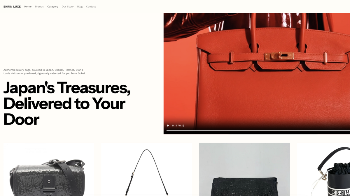 EKRIN Luxe est une jeune entreprise fondée à Dubaï en mars 2026 par trois co-fondateurs français — Bastien, Cléry et Aurélie. La société propose sur sa boutique en ligne une sélection d'articles de luxe de seconde main (Chanel, Hermès, Dior…) sourcés directement auprès de partenaires spécialisés au Japon, réputés mondialement pour la qualité et l'authenticité de leurs pièces.