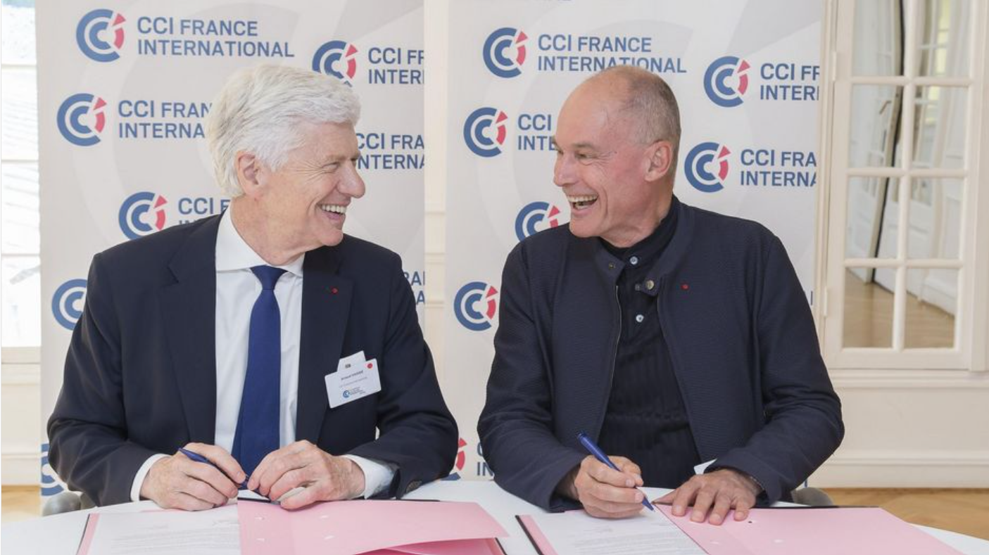 Le partenariat entre CCI France International et la Fondation Solar Impulse a été officiellement signé par Arnaud VAISSIÉ, Président de CCI France International et Bertrand PICCARD, initiateur et Président de la Fondation Solar Impulse, lundi 24 juin 2024 lors de la soirée des Trophées CCI France International.
