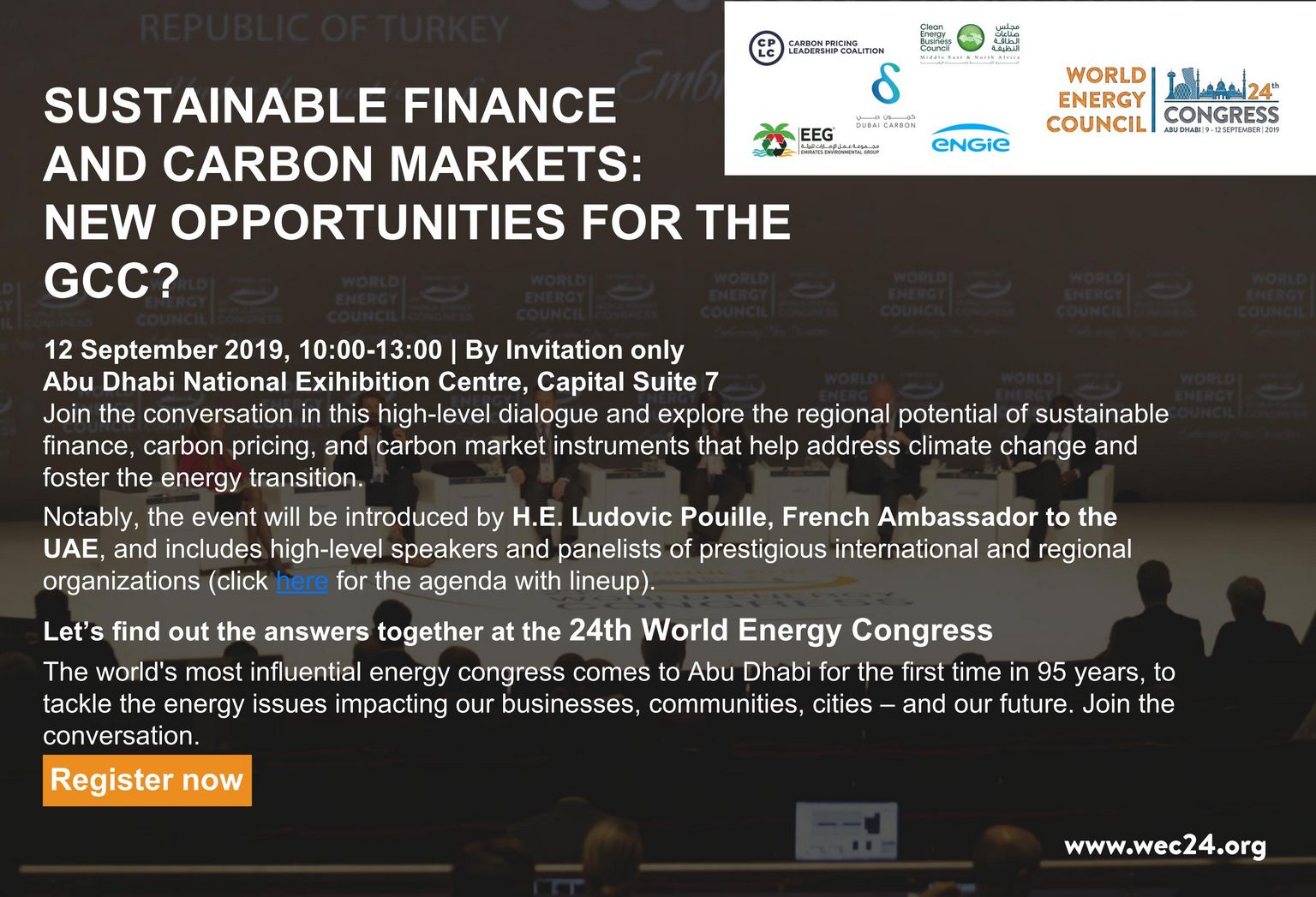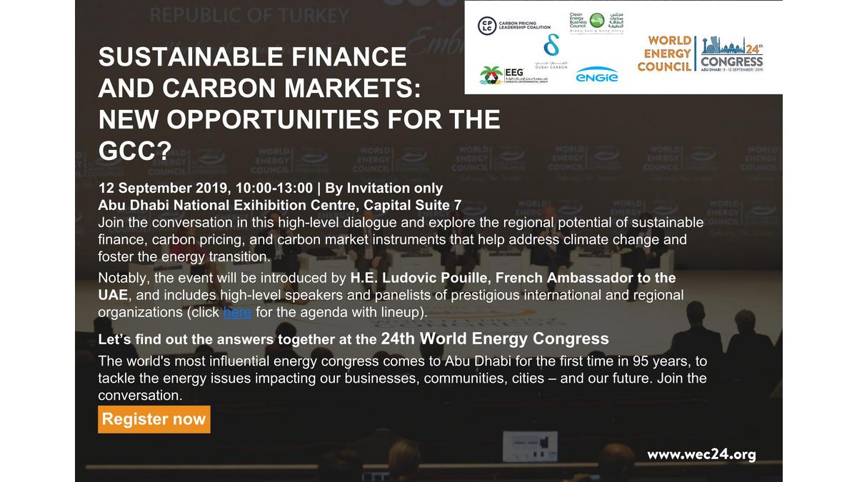 Sustainable Finance and Carbon Markets: New opportunities for the GCC? 12 September 2019, Abu Dhabi National Exihibition Centre, Capital Suite 7