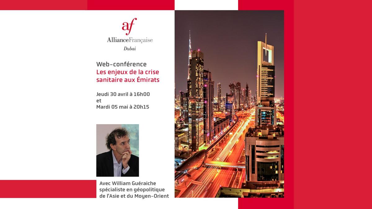 Les enjeux de la crise sanitaire aux Émirats❗️Rejoignez-nous pour une Web-conférence d'actualité animée par William Guéraiche, qui vous proposera de réfléchir et d'échanger sur les enjeux liés à la crise sanitaire actuelle qui agit, comme un révélateur, au sens photographique du terme, et permet de mieux comprendre des aspects qui ne sont guère visibles en temps ‘normal’ : de la structure pyramidale du pouvoir à la mécanique complexe des relations intercommunautaires.