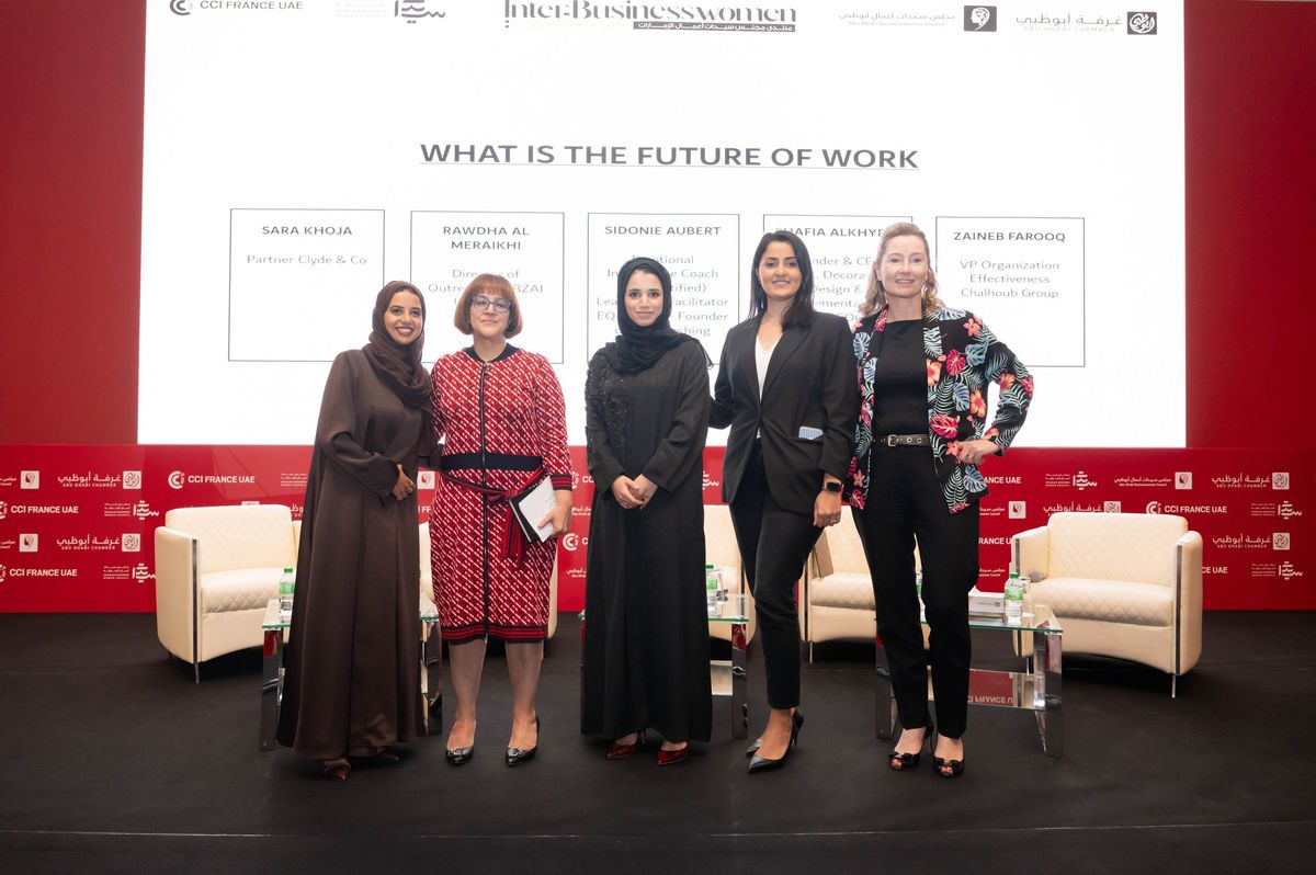 - The last panel discussion on “What is the Future of Work” discussing the Skills of the future, Talent acquisition and Managing KPIs, moderated by Sara Khoja Partner at Clyde & Co, with the participation of Rawdha Al Meraikhi Director of Outreach, MBZAI University, Sidonie Aubert Emotional Intelligence Coach (ICF certified) - Leadership Facilitator – EQ trainer – ‘EQ Coaching’ founder, Shafia AlKhyeli Founder & CEO SOUL Decoration Design & Implementation and OSOOL Engineering Consultants, and Zaineb Farooq VP Organization Effectiveness, Chalhoub Group