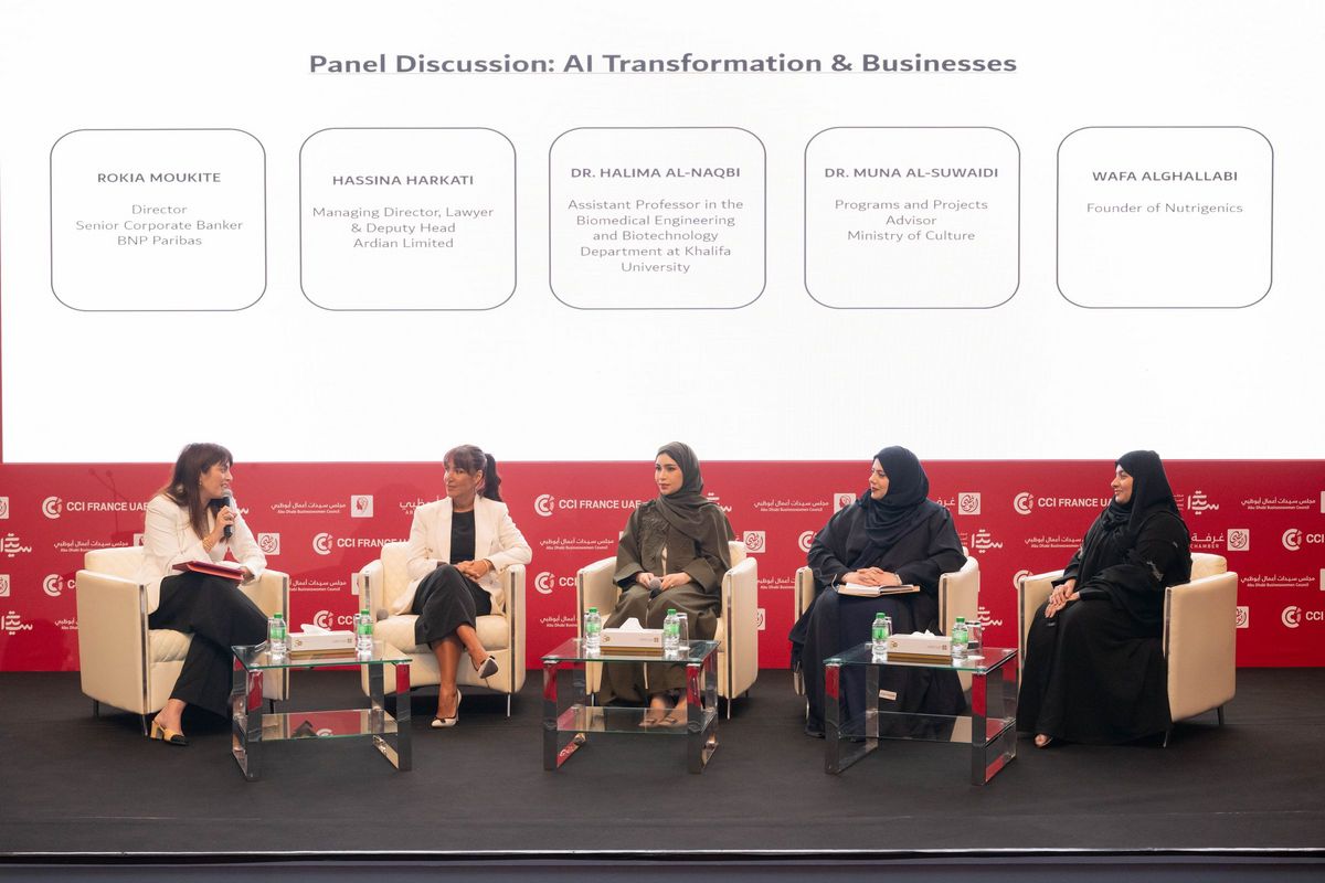 - A panel on "AI Transformation & Businesses" tackling Regulating AI, Responsible AI & Ethics and Implementation, moderated by Rokia Moukite Director - Senior Corporate Banker, BNP Paribas, with the participation of Hassina Harkati Managing Director, Lawyer & Deputy Head, Ardian Limited, Dr. Halima Al Naqbi Assistant Professor in the Biomedical Engineering and Biotechnology Department at Khalifa University, Dr. Muna Al-Suwaidi Programs and Projects advisor, Ministry of Culture and Wafa Hamad Mohamed Algallabi Founder of Nutrigenics.