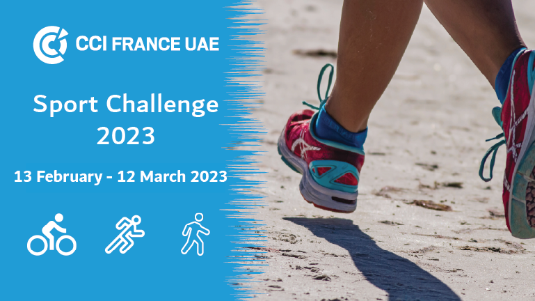 We are pleased to launch the second edition of the sport challenge organized by CCI France UAE. Grab your bike, your running shoes, or just your cap and join us for a month of sport, teamwork, motivation, to raise awareness about the environment, people and our future.
