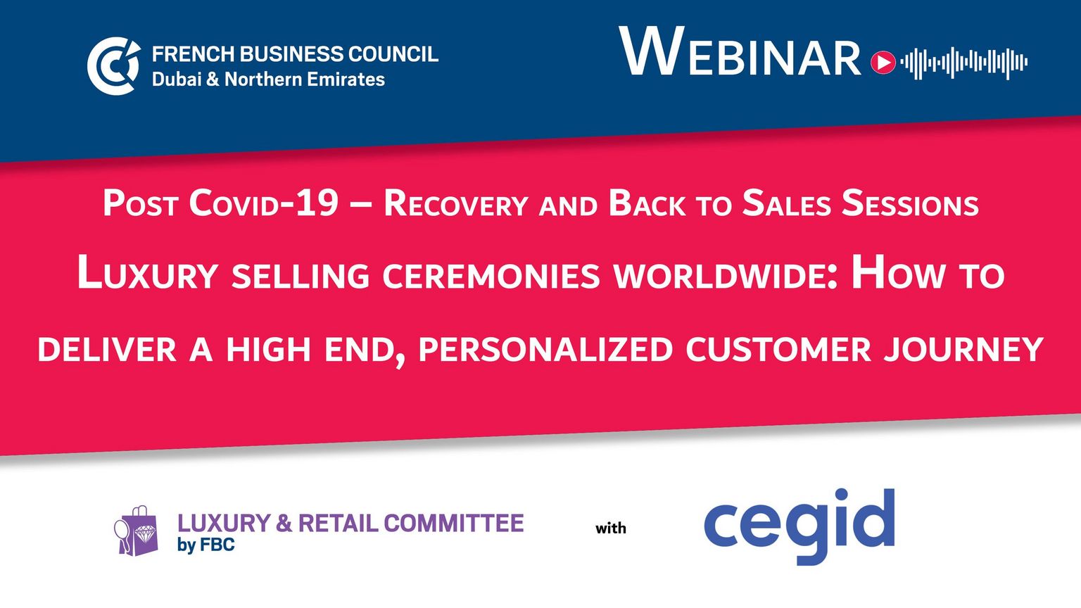 The French Business Council and Cegid have come together during this very challenging time for Retailers to share with you a series of webinars Post Covid-19 that will give you insights into how successful brands have created a frictionless and unified shopping experience for their customers online and instore accelerating sales, customer brand engagement, employee efficiency and satisfaction. These best practices, technology advancements combined with the learnings from Covid 19 are designed to allow you to make a fast recovery, get back to sales and prepare your business for a brighter retailing future. So, if you have some downtime, make sometime for yourself. During this one-hour webinar you will hear from Cegid best in class expert and get your chance to ask your questions specific to your retailing needs. We hope you can join us and look forward to talking to you.