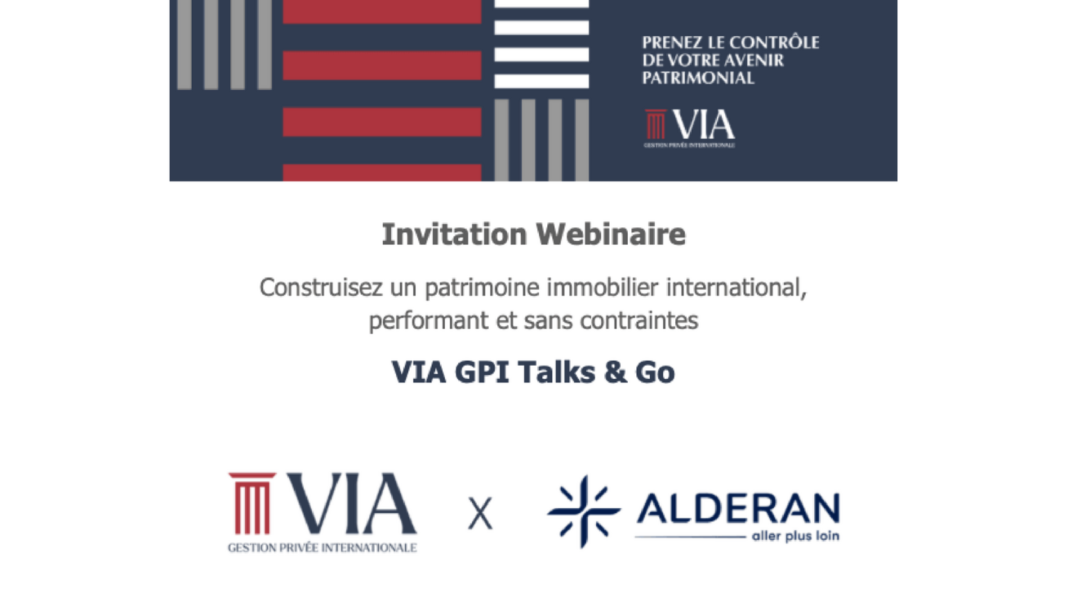 VIA Gestion Privée Internationale et Alderan ont le plaisir de vous inviter à un webinaire dédié à la SCPI Comète, une solution d’épargne immobilière 100 % internationale, accessible où que vous soyez dans le monde.