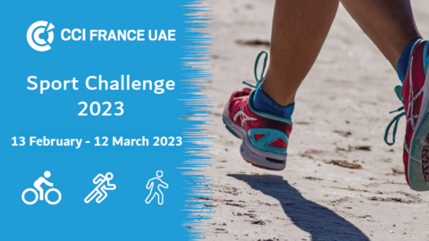 Nous sommes heureux de lancer la deuxième édition du défi sportif organisé par CCI France UAE. Prenez votre vélo, vos baskets, ou simplement votre casquette et rejoignez-nous pour un mois de sport, d'esprit d'équipe, de motivation, pour sensibiliser à l'environnement, et à notre avenir.