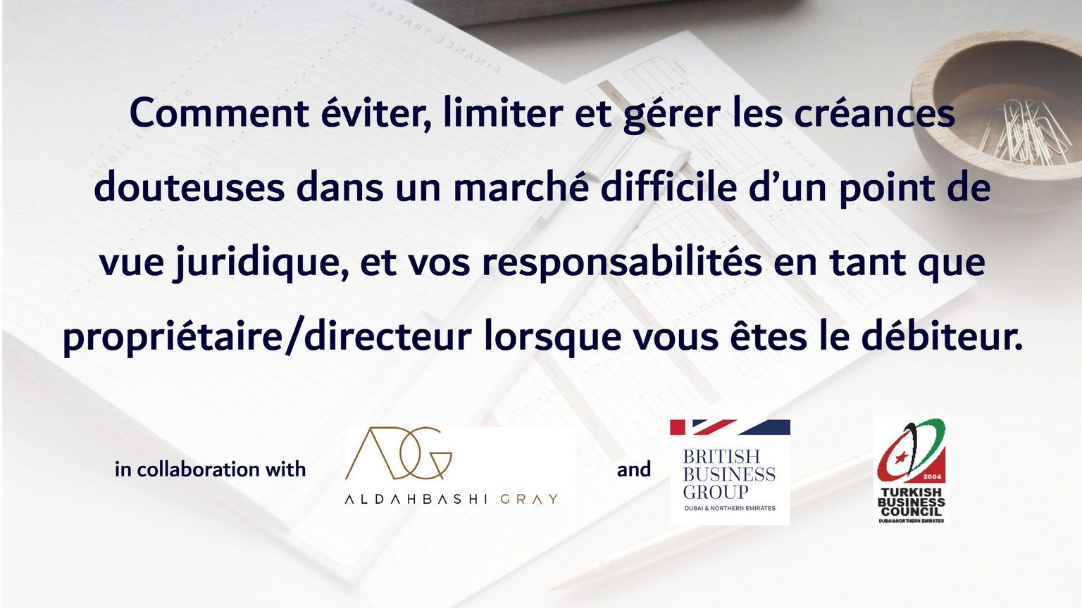 [En anglais - Webinaire] Comment éviter, limiter et gérer les créances douteuses dans un marché difficile d'un point de vue juridique, et vos responsabilités en tant que propriétaire/directeur lorsque vous êtes le débiteur?