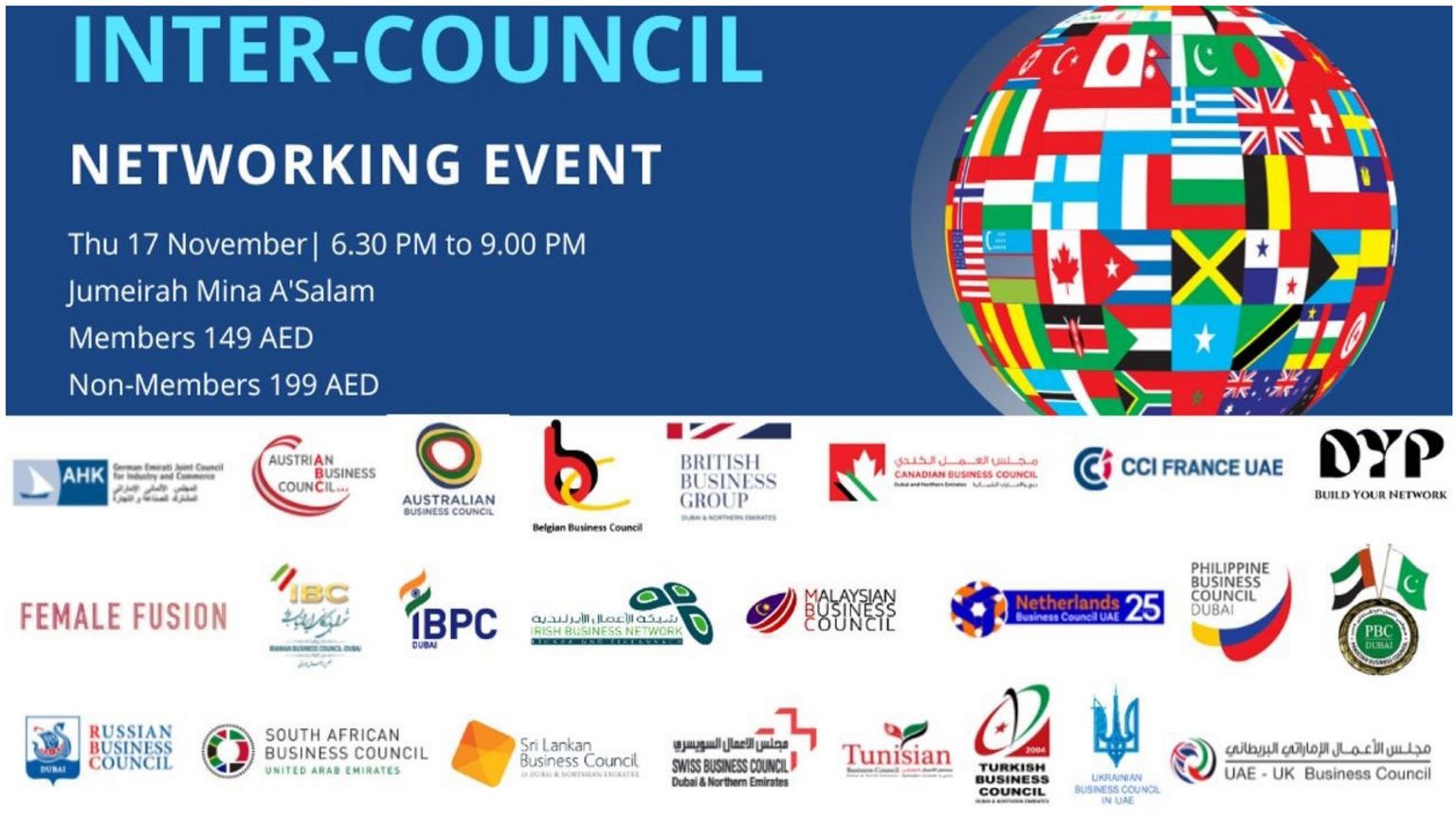 Célébrant les relations commerciales internationales, la connectivité et la diversité, rejoignez 22 conseils d'entreprises et groupes de réseautage le jeudi 17 novembre à Mina A'Salam.