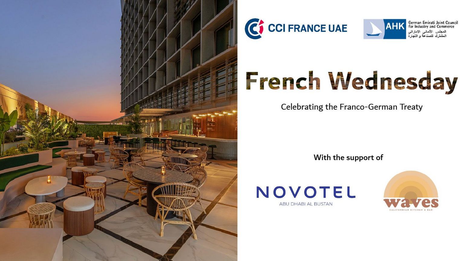 Cette édition spéciale, organisée en collaboration avec le German Emirati Joint Council for Industry & Commerce (AHK), marquera la célébration du Traité franco-allemand, mettant en lumière la solidité de la coopération et du dialogue franco-allemands au sein de la communauté économique internationale.