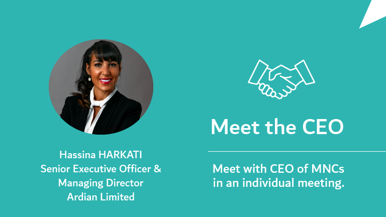 " Meet the CEO " est une formidable opportunité pour les PME et les entrepreneurs de rencontrer un PDG d'une entreprise multinationale. L'objectif est très simple : chaque mois, un PDG rencontrera individuellement pendant une demi-heure un entrepreneur ou une PME. Le PDG sera disponible pour une période de 3 heures, et rencontrera jusqu'à 6 entreprises, sélectionnées en fonction de leur pertinence pour son entreprise multinationale.