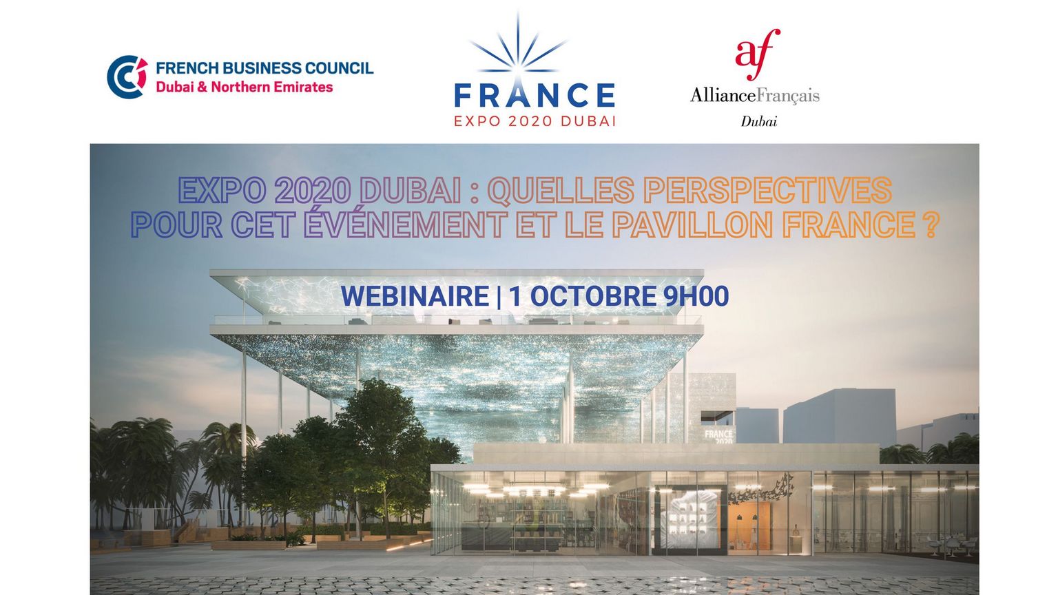 L’Exposition 2020 Dubaï a été reportée d'un an pour accueillir dans les meilleures conditions les millions de visiteurs attendus, et avec la volonté renouvelée et collective d'identifier des solutions concrètes aux plus grands défis de notre temps. Le Pavillon France, porté par la COFREX (Compagnie Française des Expositions, chargée de l’organisation des participations françaises dans les Expositions universelles et internationales) et ses partenaires, donnent rendez-vous aux visiteurs en octobre 2021 autour d’une ambition renouvelée. Le décalage d’un an offre l’occasion de réinventer la programmation du Pavillon qui s’adaptera aux enjeux, plus actuels que jamais, de nouvelles mobilités plus respectueuses de la planète et au service des citoyens.