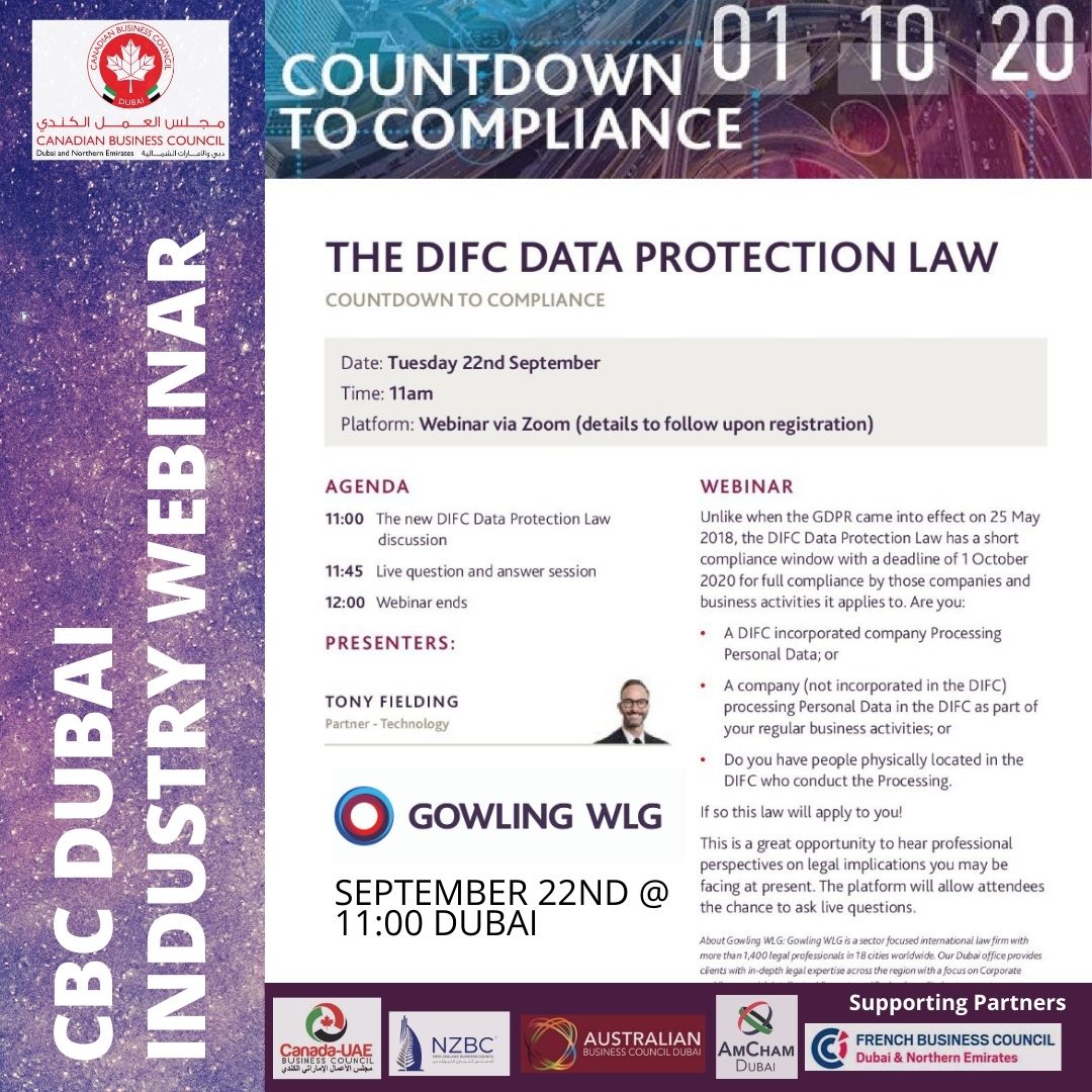 CBC Dubai Industry Webinar - The DIFC Data Protection Law - Gowling WLG