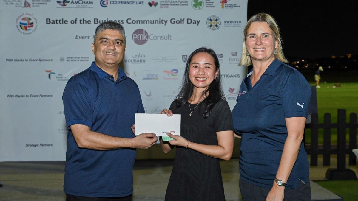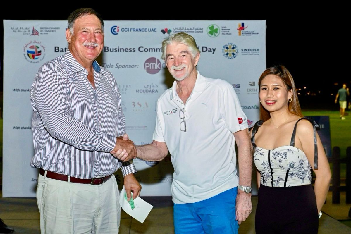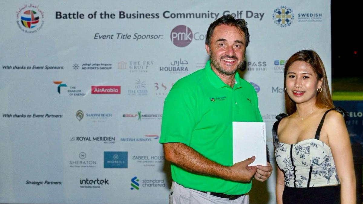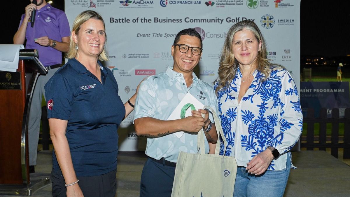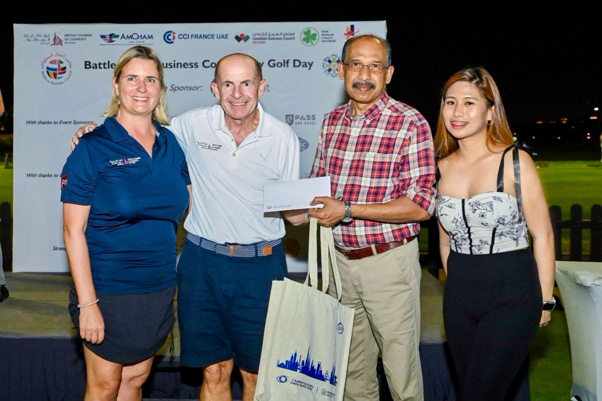 Players from CCI France UAE, British Chamber of Commerce Abu Dhabi, AmCham Abu Dhabi, Canadian Business Council, Irish Business Council, BeNeLux Business Council and Swedish Business Council for a fantastic corporate day out at our Battle of the Business Community Golf Day, in association with PMKConsult.